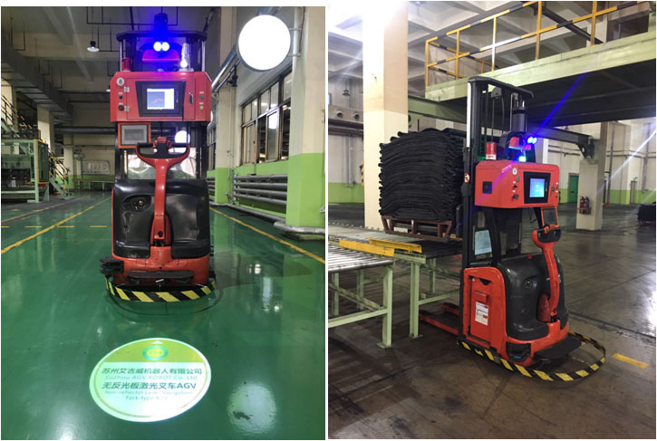 堆垛叉車AGV,可在不同高度的平臺上搬運堆垛,適用于單面、川字托盤及類似物料,用于倉儲和生產線上的物料自動搬運堆垛。